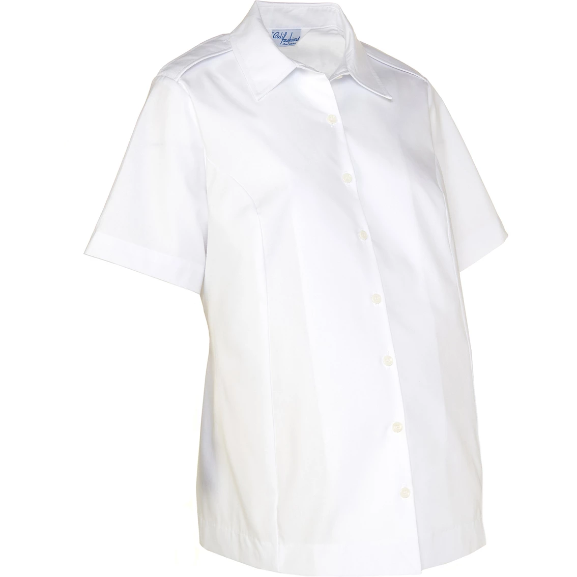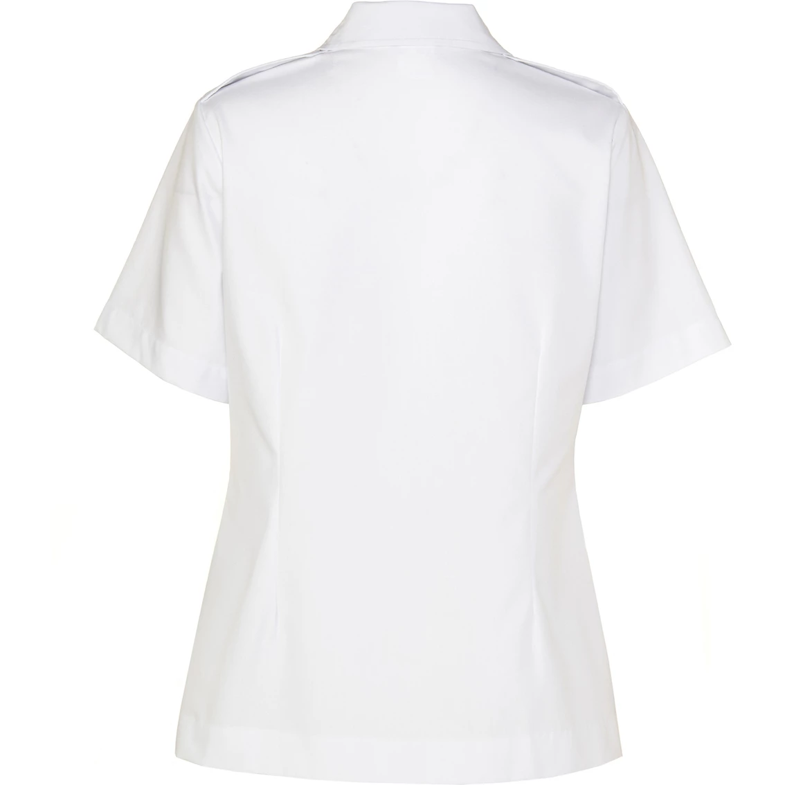 This short-sleeved Air Force maternity shirt design is semi-tailored with a button front, princess lines, a convertible collar, fisheye darts in the back and buttoned epaulets. This overblouse is crafted from a soft poly cotton blend for guaranteed comfort. Style: 3062SSDC.
